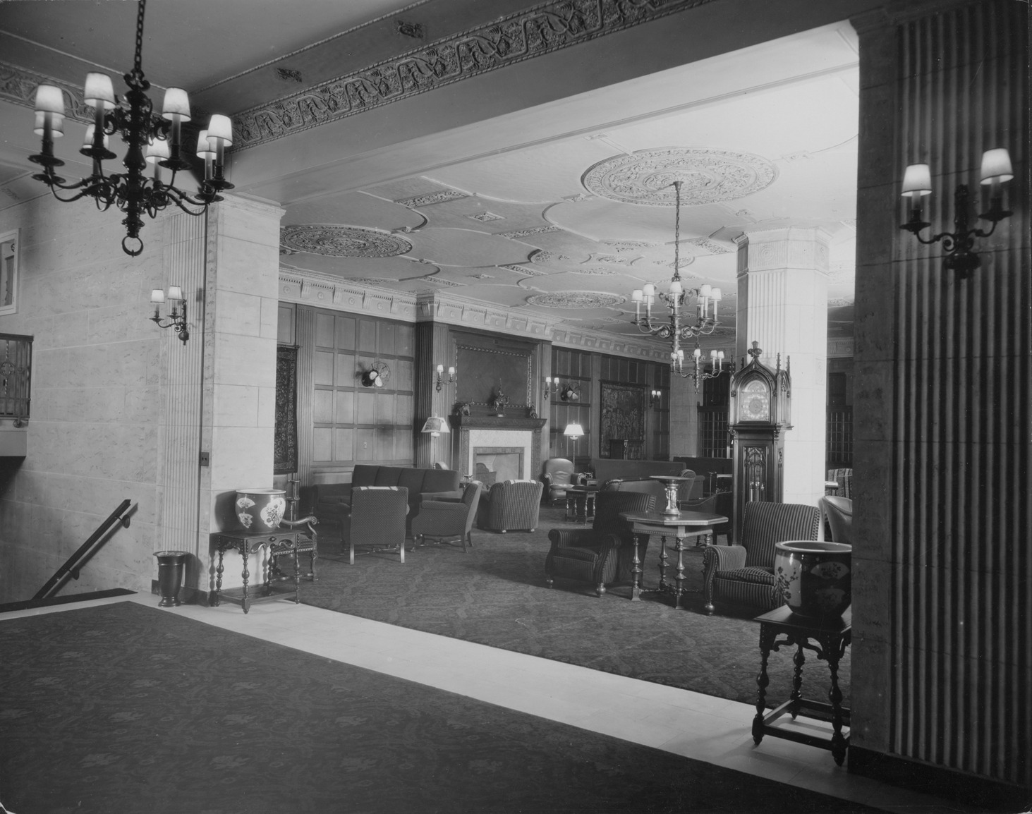 Favorite this☆ Masonic Temple lounge Description: Interior of the Masonic Temple Lounge. Written on photo back: "Detroit Masonic Temple-Shrine Club Lounge." Stamped on photo back: "Thomas Ellison, photographer of architecture." Details Resource ID: MR0507 Creator: George D. Mason & Co. Ellison, Thomas Subject: Masonic Temple (Detroit, Mich.) Photographers--Michigan--Detroit Photographic prints Date Issued: 1928 (year approximate) Format: 1 photographic print ; 7.75 x 9.75 in. Member of: Burton Historical Collection Filing Location: D/Architecture-Mason & Rice Colln.-Masonic Temple Rights: Physical rights are retained by DPL. Copyright is retained in accordance with U.S. copyright laws.