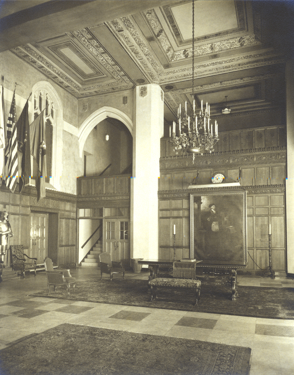 Favorite this☆ Masonic Temple Consistory Lounge Description: Consistory Lounge in the Masonic Temple. Written on photo back: "Masonic Temple-Consistory Lounge." Details Resource ID: MR0527 Creator: George D. Mason & Co. Subject: Masonic Temple (Detroit, Mich.) Conference rooms--Michigan--Detroit Paneling--Michigan--Detroit Photographic prints Date Issued: 1928 (year approximate) Format: 1 photographic print ; 9.75 x 7.5 in. Member of: Burton Historical Collection Filing Location: D/Architecture-Mason & Rice Colln.-Masonic Temple Rights: Physical rights are retained by DPL. Copyright is retained in accordance with U.S. copyright laws.