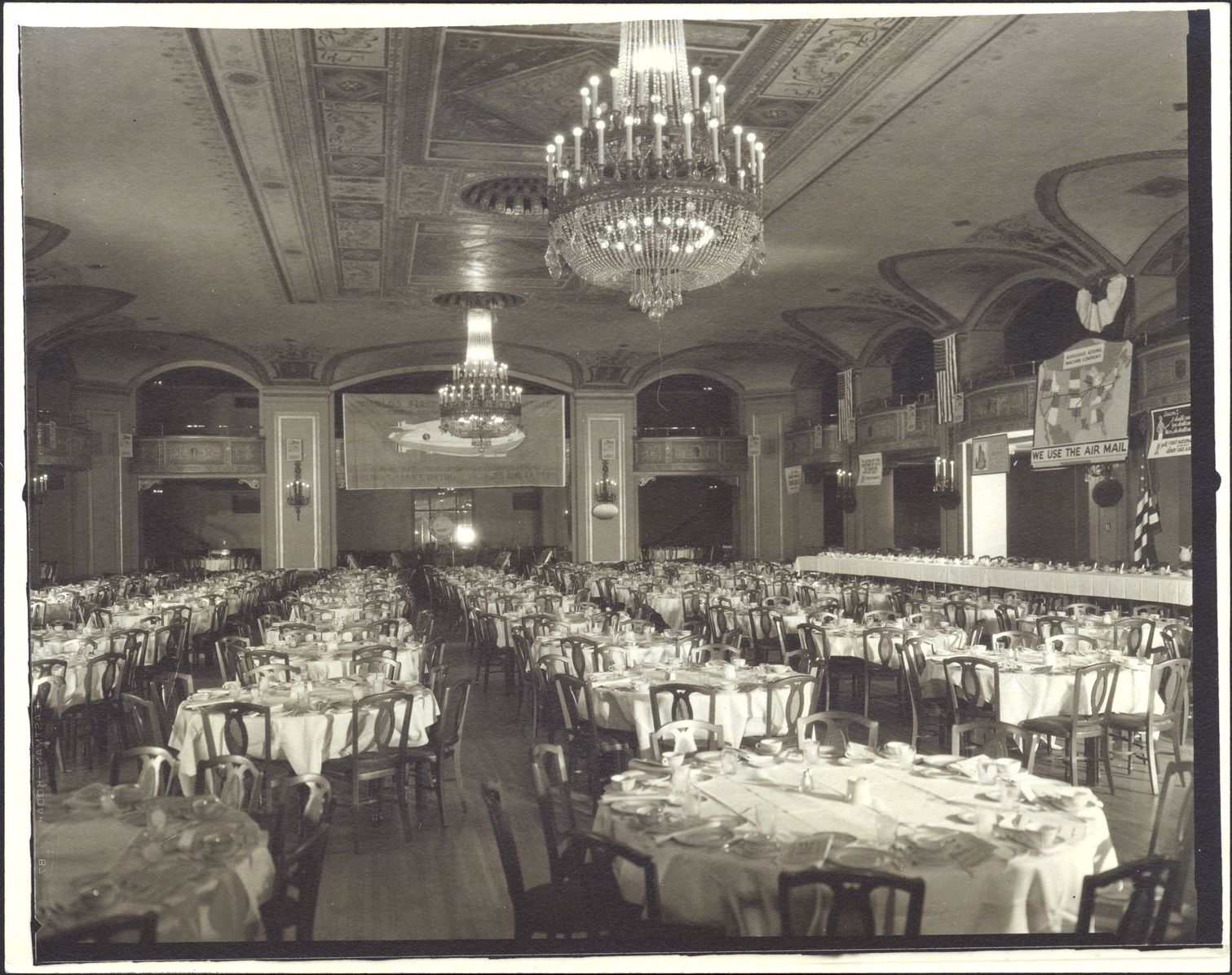 Crystal Ballroom of the Masonic Temple. Written on photo back: "Masonic Temple-M.T.-Crystal Ball Room."