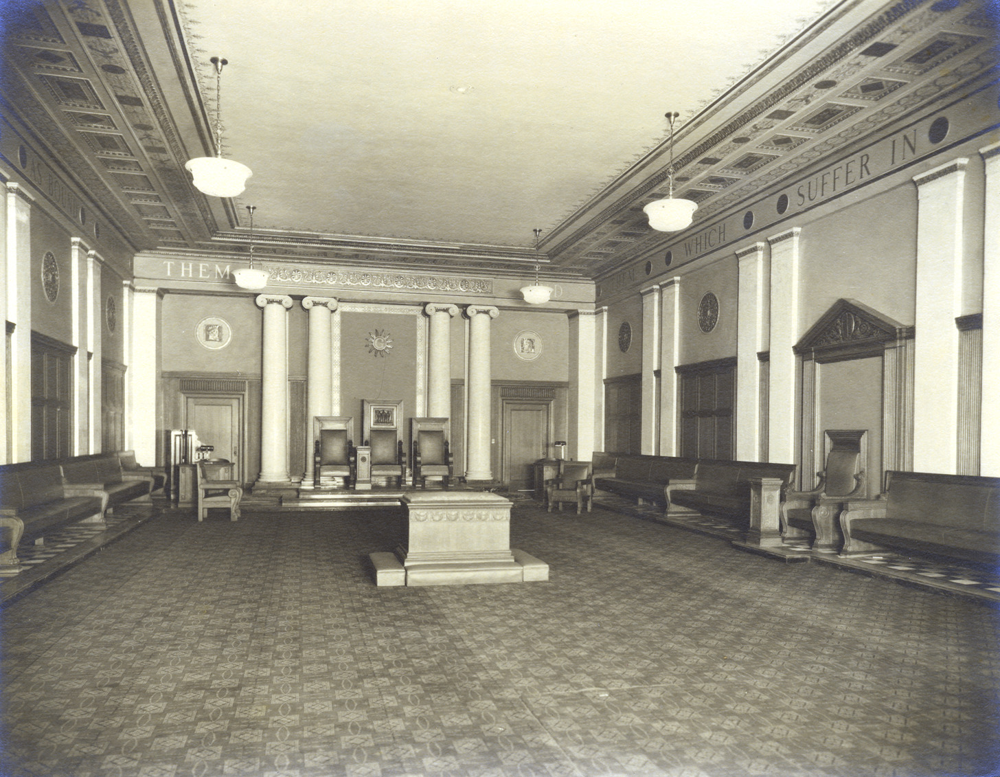 Favorite this☆ Masonic Temple Roman Ionic Lodge Description: Roman Ionic Lodge in the Masonic Temple. Written on photo back: "Masonic Temple-Roman Ionic Lodge." Details Resource ID: MR0537 Creator: George D. Mason & Co. Subject: Masonic Temple (Detroit, Mich.) Rooms--Michigan--Detroit Photographic prints Date Issued: 1928 (year approximate) Format: 1 photographic print ; 7.75 x 9.75 in. Member of: Burton Historical Collection Filing Location: D/Architecture-Mason & Rice Colln.-Masonic Temple Rights: Physical rights are retained by DPL. Copyright is retained in accordance with U.S. copyright laws.