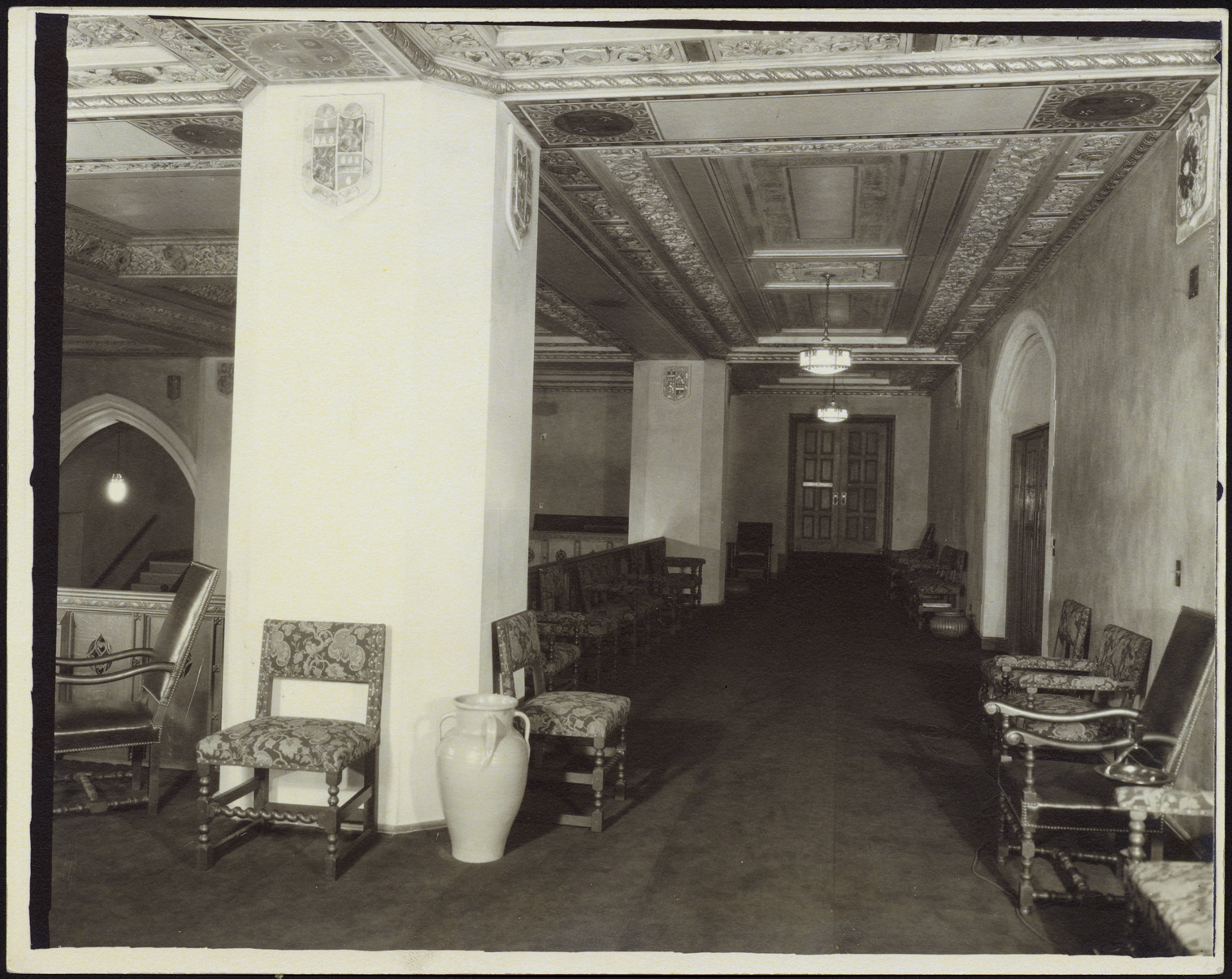 Favorite this☆ Masonic Temple Consistory Lounge Description: Interior of Masonic Temple Consistory Lounge. Written on photo back: "Consistory Lounge-2nd floor." Details Resource ID: MR0552 Creator: George D. Mason & Co. Subject: Masonic Temple (Detroit, Mich.) Rooms--Michigan--Detroit Photographic prints Date Issued: 1928 (year approximate) Format: 1 photographic print ; 8 x 10 in. Member of: Burton Historical Collection Filing Location: D/Architecture-Mason & Rice Colln.-Masonic Temple Rights: Physical rights are retained by DPL. Copyright is retained in accordance with U.S. copyright laws.