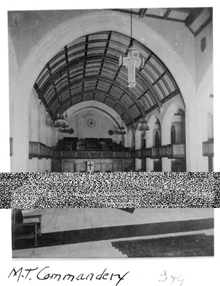 Commandery room in the Masonic Temple, with high vaulted ceiling. Written on photo front: "M.T. Commandery."