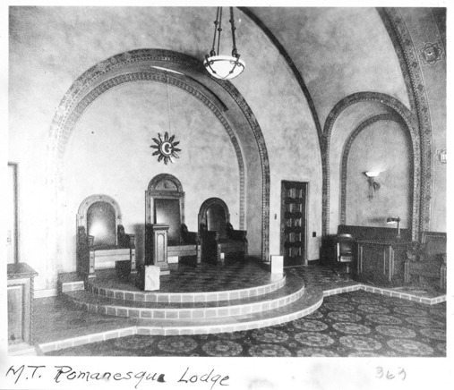 Romanesque Lodge of the Masonic Temple. Written on photo front: "M.T. Romanesque Lodge."