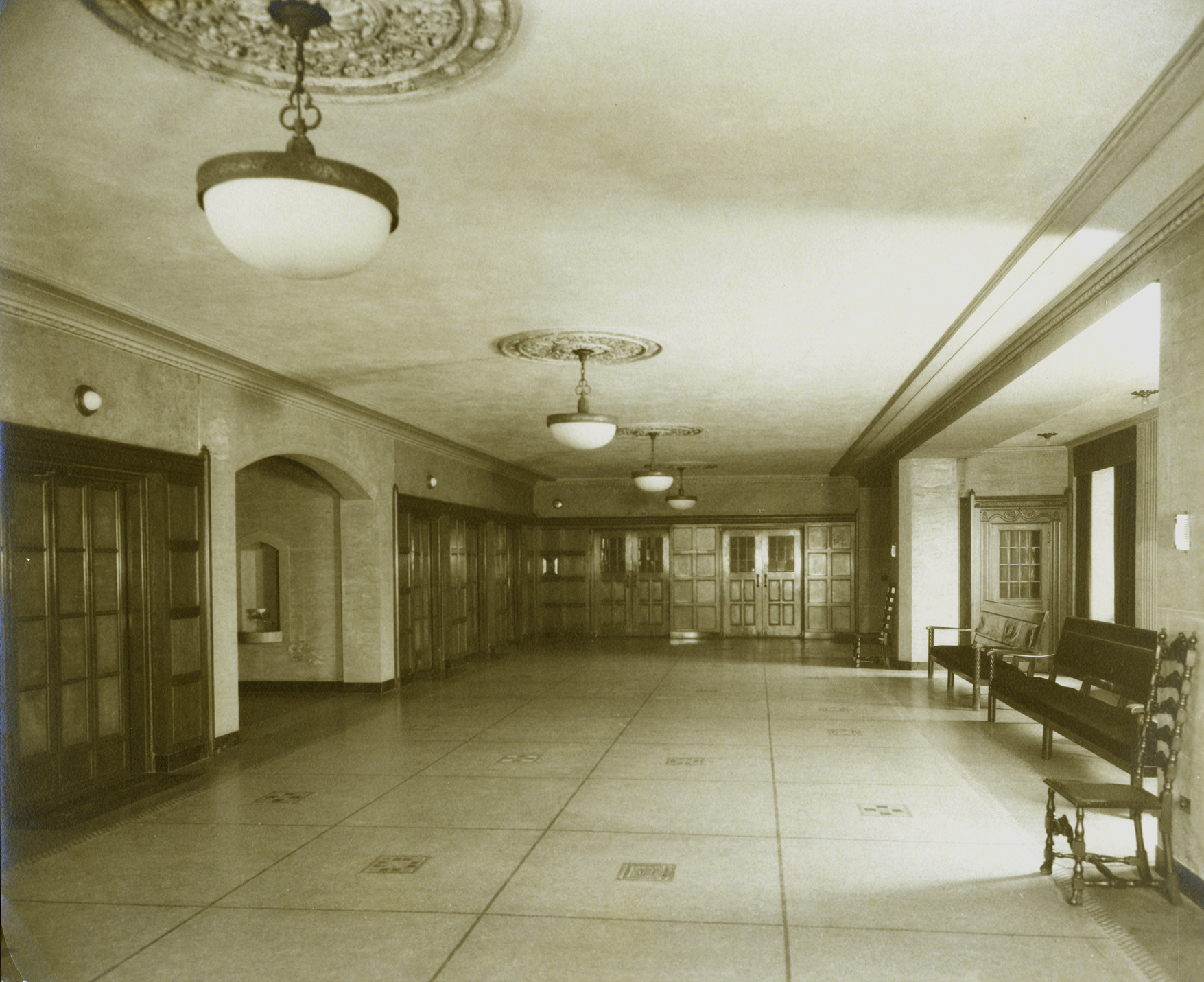 Interior of Masonic Temple. Written on photo back: "Masonic Temple-Lobby for Chapter and Lodge."
