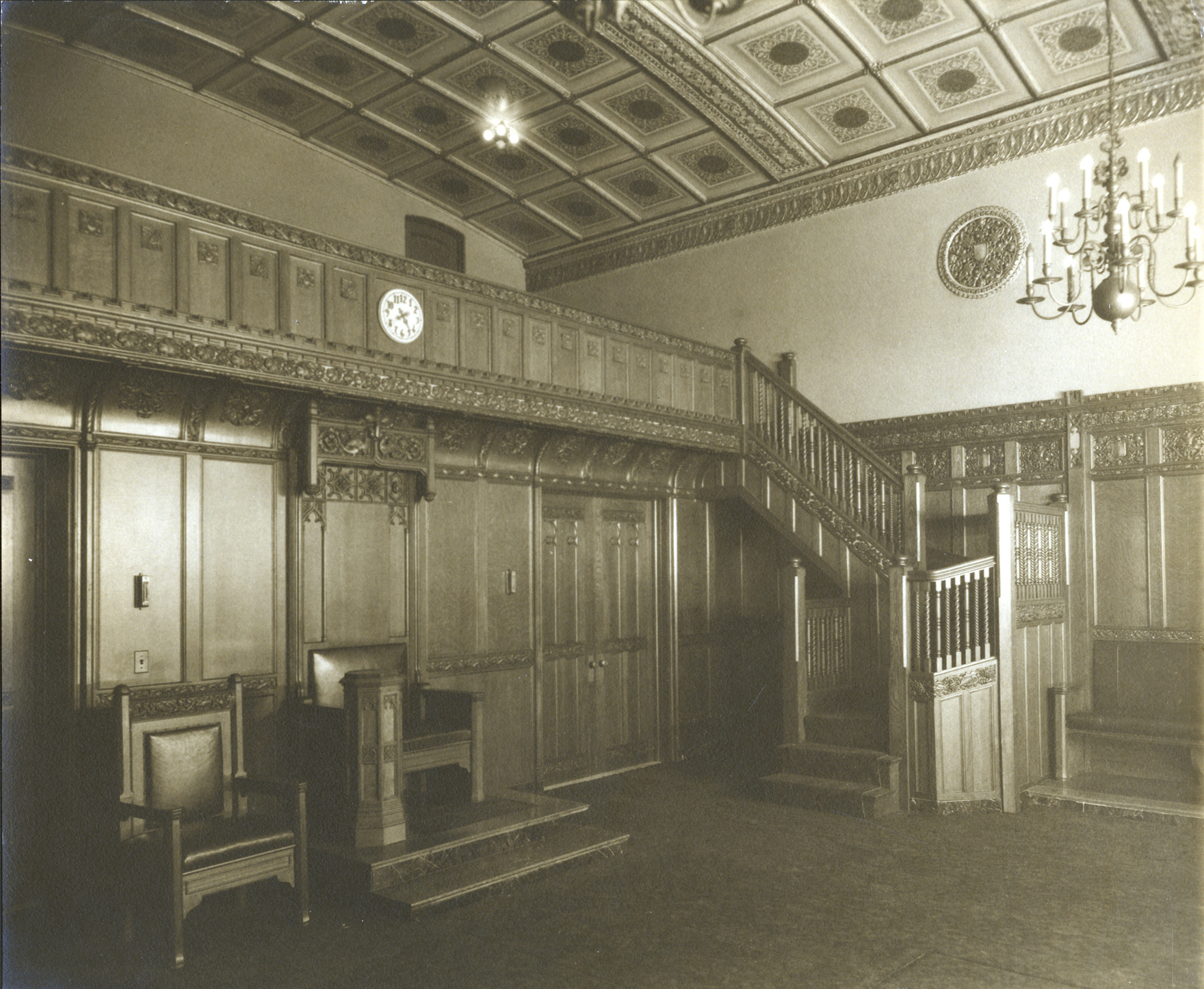 Favorite this☆ Masonic Temple Tudor lodge Description: Interior of Masonic Temple. Written on photo back: "Masonic Temple-Tudor Lodge." Details Resource ID: MR0656 Creator: George D. Mason & Co. Subject: Masonic Temple (Detroit, Mich.) Conference rooms--Michigan--Detroit Staircases--Michigan--Detroit Photographic prints Date Issued: 1928 (year approximate) Format: 1 photographic print ; 9.5 x 11.75 in. Member of: Burton Historical Collection Filing Location: D/Architecture-Mason & Rice Colln.-Masonic Temple Rights: Physical rights are retained by DPL. Copyright is retained in accordance with U.S. copyright laws.
