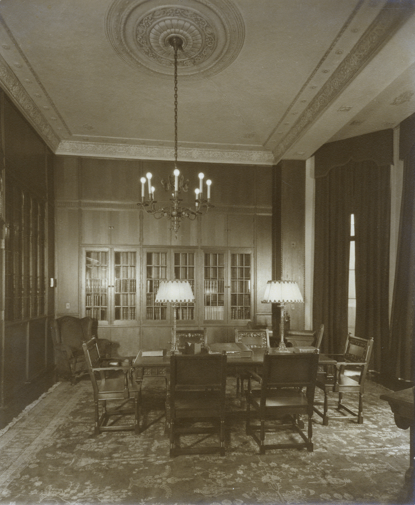 Favorite this☆ Masonic Temple library Shrine Club Description: Interior of Masonic Temple. Written on photo back: "Masonic Temple-Library Shrine Club." Details Resource ID: MR0663 Creator: George D. Mason & Co. Subject: Masonic Temple (Detroit, Mich.) Masonic libraries--Michigan--Detroit Photographic prints Date Issued: 1928 (year approximate) Format: 1 photographic print ; 11.75 x 9.75 in. Member of: Burton Historical Collection Filing Location: D/Architecture-Mason & Rice Colln.-Masonic Temple Rights: Physical rights are retained by DPL. Copyright is retained in accordance with U.S. copyright laws.