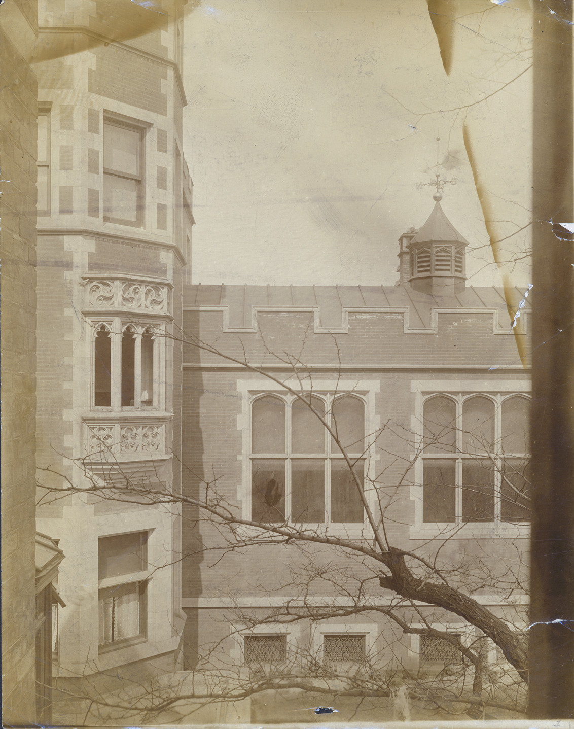 Home of James E. Scripps, detail of addition including cupola with weather vane. Written on photo back: "Scripps Home-Detroit."