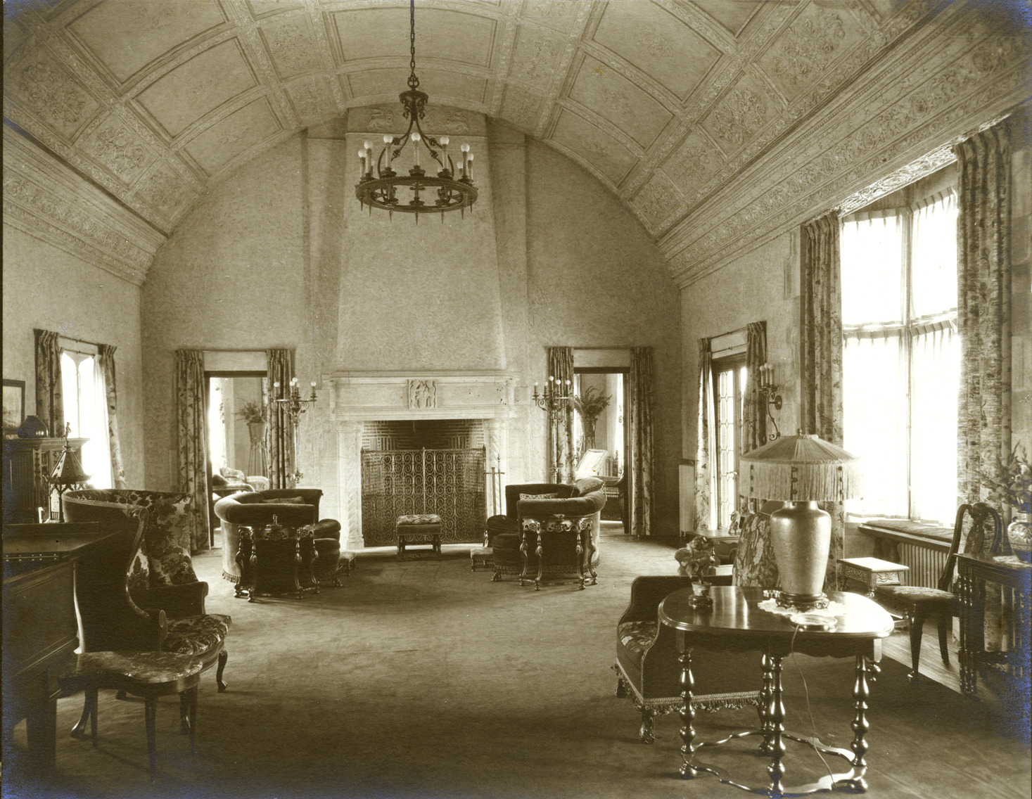 Favorite this☆ Edwin S. George residence living room Description: Interior of Edwin S. George residence; barrel vault, chandelier, fireplace with screen, bay window. Written on photo back: "Living room." Details Resource ID: MR0701 Creator: George D. Mason & Co. Subject: George, Edwin S., 1873-1951--Homes and haunts--Michigan--Bloomfield Hills Architecture, Domestic--Michigan--Bloomfield Hills Living rooms--Michigan--Bloomfield Hills Photographic prints Date Issued: 1925 Format: 1 photographic print ; 7.75 x 9.75 in. Member of: Burton Historical Collection Filing Location: D/Architecture-Mason & Rice Colln.-George, Edwin S. Rights: Physical rights are retained by DPL. Copyright is retained in accordance with U.S. copyright laws.