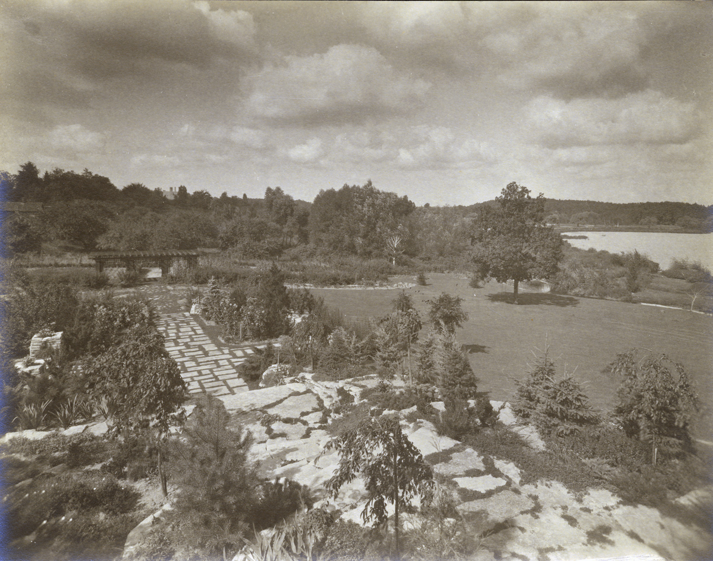 Favorite this☆ Edwin S. George residence garden Description: Garden of Edwin S. George residence, showing lake, paving, pergola. Details Resource ID: MR0707 Creator: George D. Mason & Co. Subject: George, Edwin S., 1873-1951--Homes and haunts--Michigan--Bloomfield Hills Gardens--Michigan--Bloomfield Hills Photographic prints Date Issued: 1925 (year approximate) Format: 1 photographic print ; 7.75 x 9.75 in. Member of: Burton Historical Collection Filing Location: D/Architecture-Mason & Rice Colln.-George, Edwin S. Rights: Physical rights are retained by DPL. Copyright is retained in accordance with U.S. copyright laws.