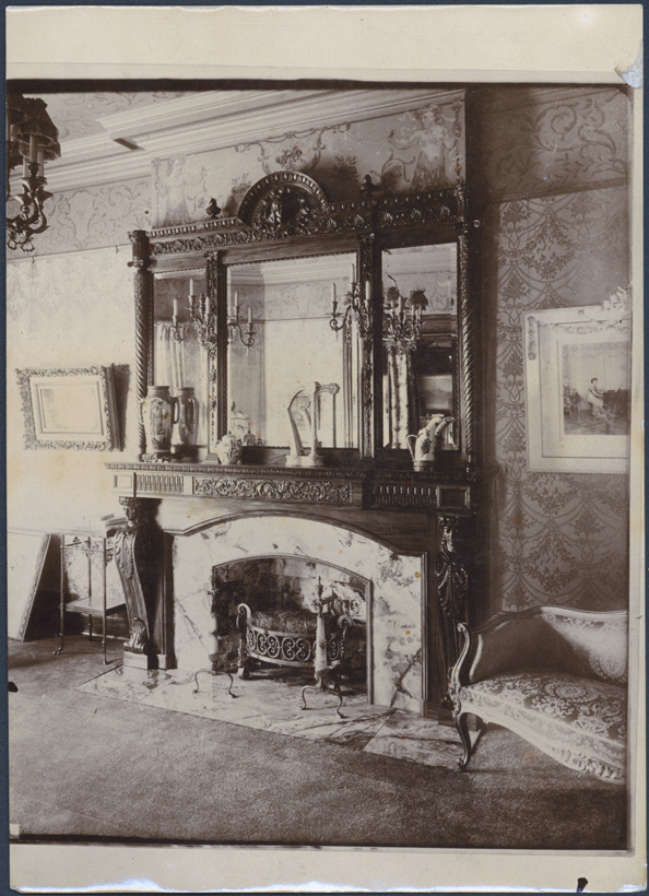 Favorite this☆ Albert L. Stephens Woodward Avenue residence interior Description: Marble fireplace and carved mantelpiece in the A.L. Stephens home on Woodward Ave. Written on photo back: "Architect-G.D. Mason." Details Resource ID: MR0749 Creator: George D. Mason & Co. Subject: Mantels Fireplaces--Michigan--Detroit Albumen prints Photographic prints Date Issued: 1890 (year approximate) Format: 1 photographic print ; 5.5 x 4 in. Member of: Burton Historical Collection Filing Location: D/Architecture-Mason & Rice Colln.-A.L. Stephens Rights: Physical rights are retained by DPL. Copyright is retained in accordance with U.S. copyright laws.
