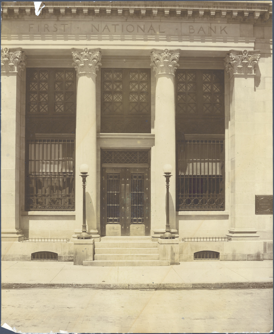 Favorite this☆ Traverse City First National Bank Description: Exterior of the First National Bank in Traverse City. Written on photo back: "Traverse City Bank-1908." Details Resource ID: MR0764 Creator: George D. Mason & Co. Subject: Bank buildings--Michigan--Traverse City Albumen prints Photographic prints Date Issued: 1908 Format: 1 photographic print ; 9.5 x 7.5 in. Member of: Burton Historical Collection Filing Location: D/Architecture-Mason & Rice Colln.- Traverse City Bank Note (Content): Duplicate copy of image in gelatin print Rights: Physical rights are retained by DPL. Copyright is retained in accordance with U.S. copyright laws.