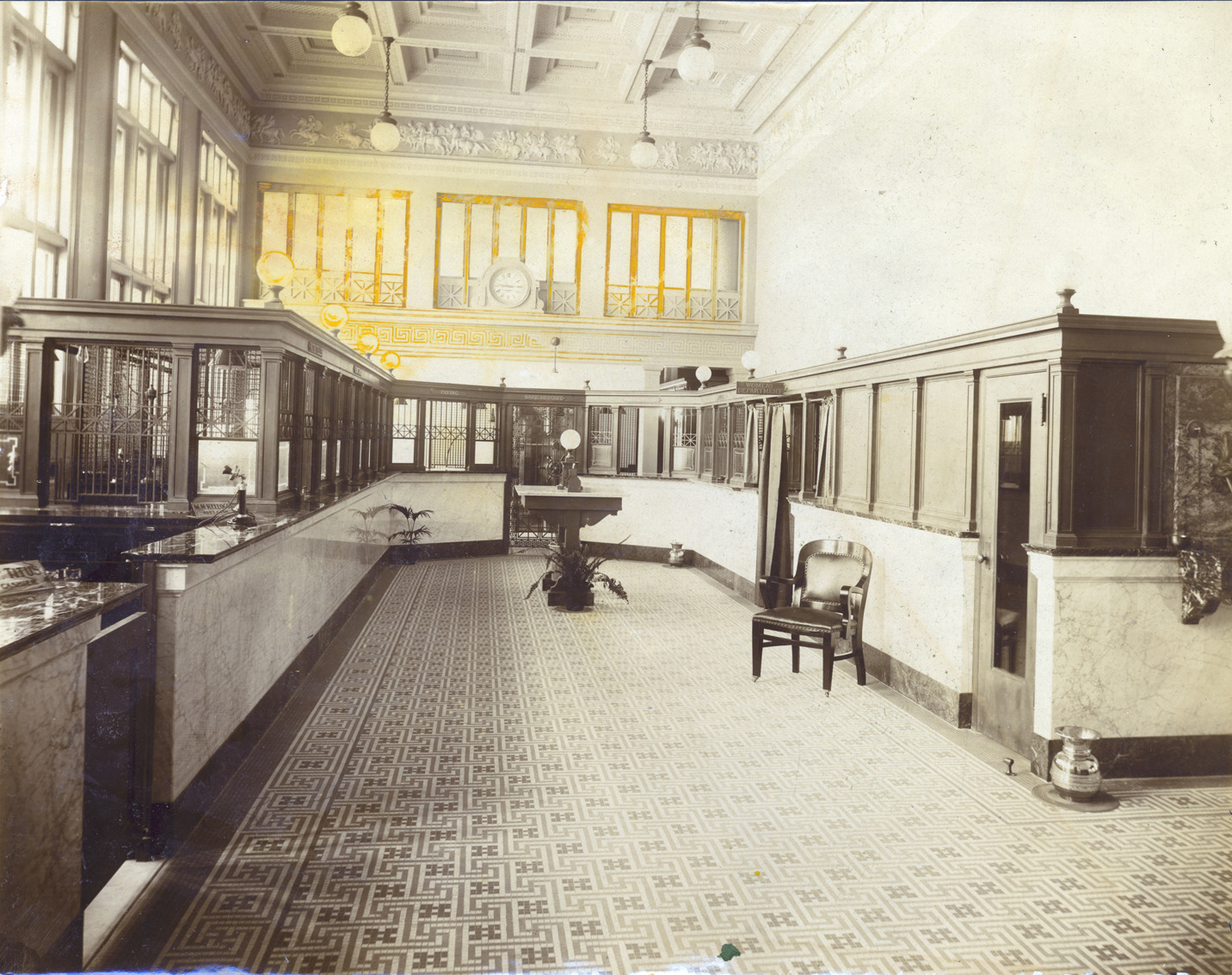 Favorite this☆ Traverse City First National Bank Description: Interior of the First National Bank in Traverse City showing teller area. Written on photo back: "Traverse City Bank-1908." Details Resource ID: MR0765 Creator: George D. Mason & Co. Subject: Bank buildings--Michigan--Traverse City Albumen prints Photographic prints Date Issued: 1908 Format: 1 photographic print ; 7.5 x 9.5 in. Member of: Burton Historical Collection Filing Location: D/Architecture-Mason & Rice Colln.- Traverse City Bank Rights: Physical rights are retained by DPL. Copyright is retained in accordance with U.S. copyright laws.