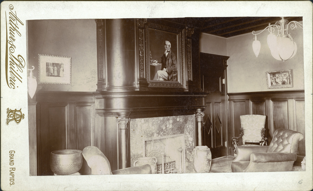 Favorite this☆ Hiram Walker & Company Description: Interior of Hiram Walker & Company showing marble fireplace, portrait hung above mantel. Printed on photo front: "Arthur & Philbric-AP-Grand Rapids." Written on photo back: "Rec. Rm.-Walker offices-Walkerville, Ont., 1892." Printed on photo back: "Arthur & Philbric-204 & 206 Woodward Ave., Detroit, Mich.-159 Summit St. Toledo, Ohio-21Canal St. Grand Rapids, Mich." Stamped on back: "George D. Mason, architect." Details Resource ID: MR0817 Creator: George D. Mason & Co. Arthur & Philbric Subject: Hiram Walker, Inc. Fireplaces--Ontario--Windsor Photographers--Michigan--Detroit Women photographers--Michigan--Detroit Albumen prints Photographic prints Date Issued: 1892 Format: 1 cabinet card ; image 4.25 x 7.5 in. Member of: Burton Historical Collection Filing Location: D/Architecture-Mason & Rice Colln.-Hiram Walker & Company Rights: Physical rights are retained by DPL. Copyright is retained in accordance with U.S. copyright laws.