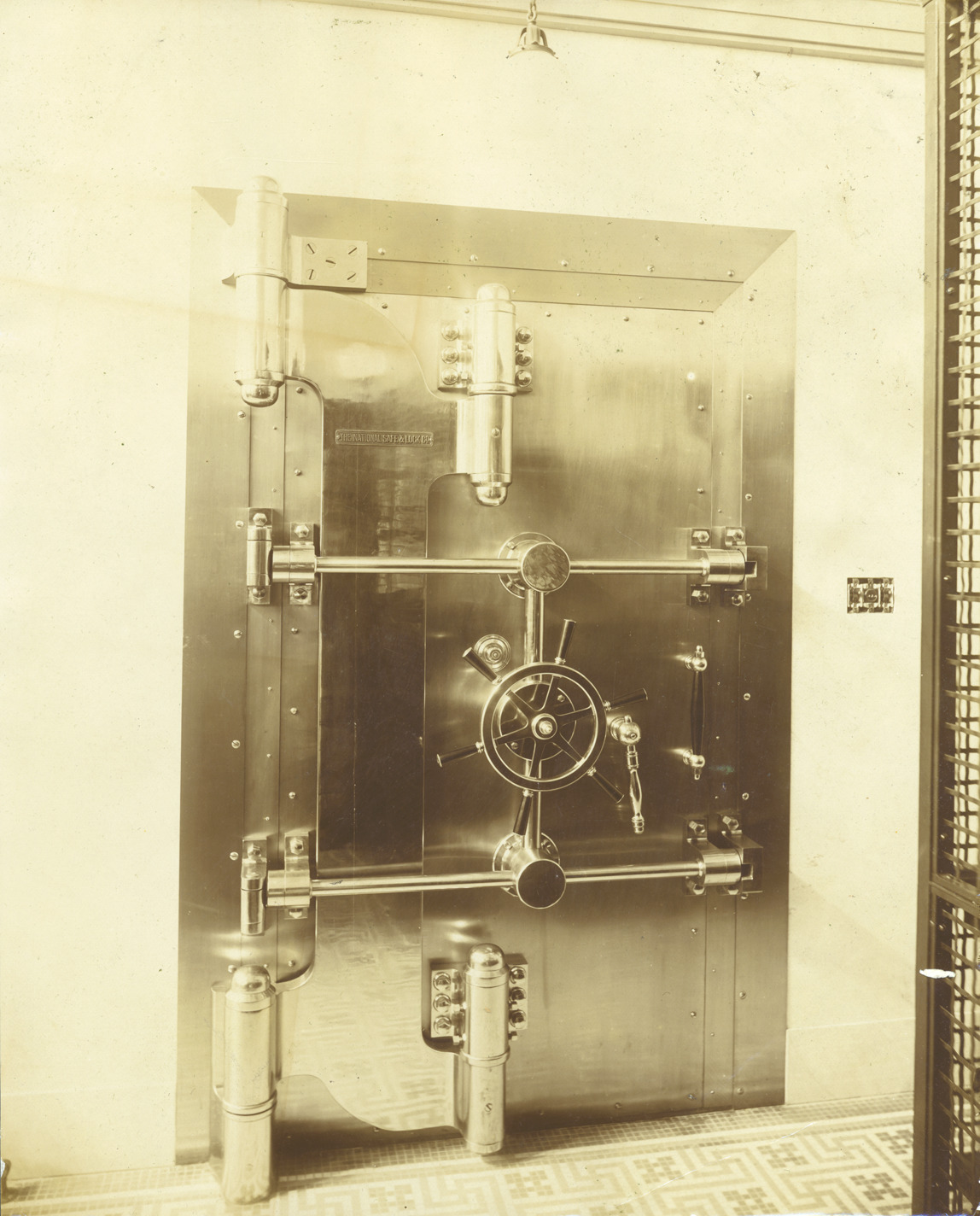 Favorite this☆ Traverse City First National Bank Description: Interior of the First National Bank in Traverse City showing vault door. Written on photo back: "Traverse City National Bank-1908." Details Resource ID: MR0862 Creator: George D. Mason & Co. Subject: Bank buildings--Michigan--Traverse City Vaults (Strong rooms)--Michigan--Traverse City Albumen prints Photographic prints Date Issued: 1908 Format: 1 photographic print ; 9.5 x 7.75 in. Member of: Burton Historical Collection Filing Location: D/Architecture-Mason & Rice Colln.- Traverse City Bank Note (Content): Duplicate copy of image in gelatin print Rights: Physical rights are retained by DPL. Copyright is retained in accordance with U.S. copyright laws.
