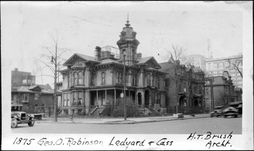 Favorite this☆ George O. Robinson residence Description: Exterior view of the home of George O. Robinson, built in 1875. Written on photo front: "1875, Geo. O. Robinson, Ledyard & Cass, H.T. Brush archt." Details Resource ID: MR0922 Creator: George D. Mason & Co. Subject: Dwellings--Michigan--Detroit Architecture, Victorian--Michigan--Detroit Photographic prints Date Issued: 1914 (year approximate) Format: 1 photographic print ; 2 x 3.25 in. Member of: Burton Historical Collection Filing Location: D/Architecture-Mason & Rice Colln. Rights: Physical rights are retained by DPL. Copyright is retained in accordance with U.S. copyright laws.