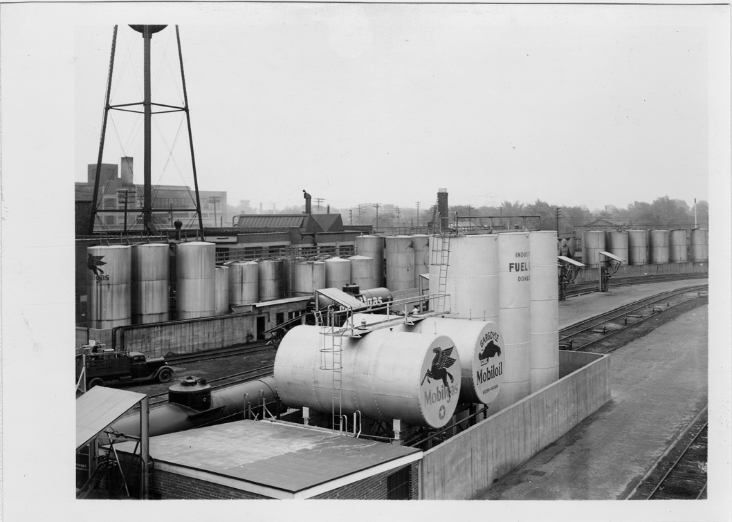 Favorite this☆ Avery Avenue Storage plant in Detroit Description: View of oil and gasoline storage tanks at the Avery Avenue Storage plant in Detroit, Michigan. Signs on tanks in foreground: "Mobilgas, Gargoyle Mobiloil." Two tank cars on railroad tracks; truck parked on lot. Factory buildings in background. Details Resource ID: na000353 Creator: White Star Refining Co. Subject: White Star Refining Co. Oil storage tanks--Michigan--Detroit Petroleum--Storage--Michigan--Detroit Petroleum industry and trade--Michigan Photographic prints Date Issued: 1939 (year approximate) Format: 1 photographic print mounted on fabric ; 5 x 7 in. Member of: Burton Historical Collection Filing Location: MS/White Star Refining Co., Box 2 Note (Content): This photograph corresponds to na000356 Rights: Physical rights are retained by DPL. Copyright is retained in accordance with U.S. copyright laws.