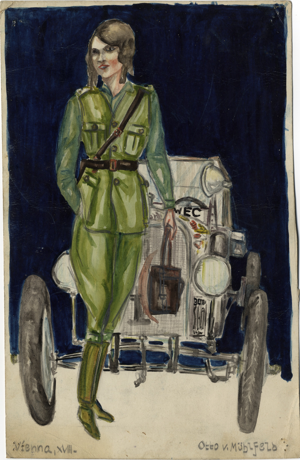Favorite this☆ Aloha Baker portrait Description: Portrait of Aloha Baker with Wanderwell car. Handwritten on front: "Vienna, XVIII, Otto v. Muhlfeld." Details Resource ID: na002102 Creator: Muhlfeld, Otto von Subject: Baker, Aloha W., 1908-1996 Automobiles Baker, Aloha W., 1908-1996--Archives Watercolor painting Date Issued: Unknown year Format: 1 sheet : col. ; 10.75 x 7 in. Member of: National Automotive History Collection Filing Location: MS33/Aloha Baker collection, Box 5, Folder 18-Wanderwells: Aloha, Cartoons & Drawings, 1923-28 Rights: Physical rights are retained by DPL. Copyright is retained in accordance with U.S. copyright laws.
