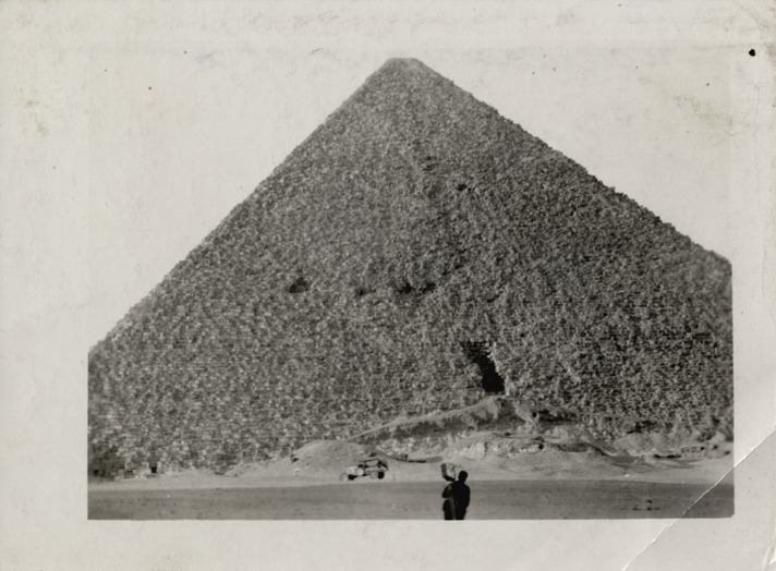 Favorite this☆ Wanderwell automobile in front of pyramid, Egypt Description: View of Wanderwell car parked in front of pyramid in Egypt. Wanderwell expedition member with movie camera in foreground. Handwritten on back: "In remembrance of a starry sky in the sands of Sahara-Libica. Capt. Wanderwell." Details Resource ID: na002202 Subject: Pyramids--Egypt Automobiles Wanderwell, Walter, 1897-1932--Travel--Egypt Baker, Aloha W., 1908-1996--Archives Photographic prints Date Issued: 1924 Format: 1 photographic print ; 3.5 x 4.75 in. Member of: National Automotive History Collection Filing Location: MS33/Aloha Baker collection, Box 6, Folder 6, Africa, Photographs, East Africa (Egypt), 1924 Rights: Physical rights are retained by DPL. Copyright is retained in accordance with U.S. copyright laws.