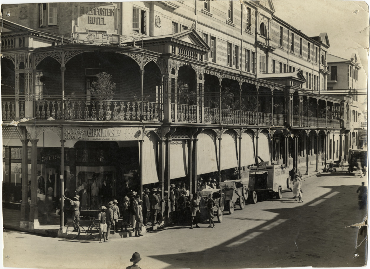 Favorite this☆ Wanderwell expedition in South Africa Description: View of Wanderwell expedition vehicles parked in front of Bloemfontein Hotel in South Africa. Expedition crew members pose in front of cars; crowd gathers on sidewalk. Handwritten on back: "South Africa." Details Resource ID: na002231 Subject: Automobiles Hotels--South Africa Wanderwell, Walter, 1897-1932--Travel--South Africa Baker, Aloha W., 1908-1996--Archives Photographic prints Date Issued: 1926 Format: 1 photographic print ; 6 x 8.25 in. Member of: National Automotive History Collection Filing Location: MS33/Aloha Baker collection, Box 6, Folder 12, Africa, Photographs, South Africa, 1926 Rights: Physical rights are retained by DPL. Copyright is retained in accordance with U.S. copyright laws.
