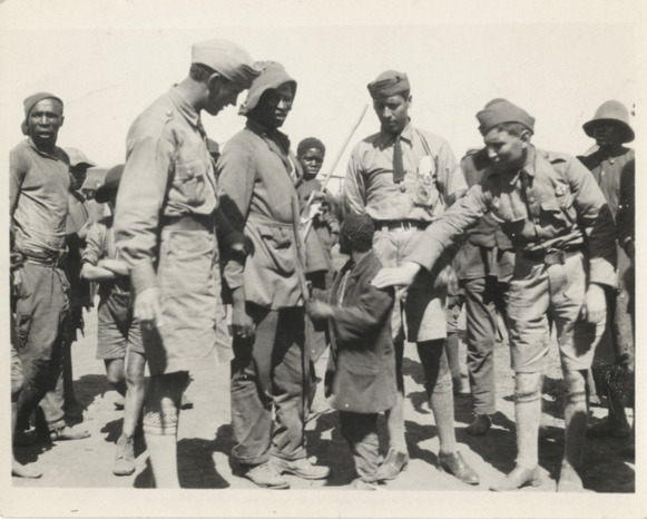 Favorite this☆ Members of Wanderwell expedition greeting Pygmy man Description: View of members of Wanderwell expedition greeting Pygmy man in South Africa. Handwritten on back: "Pigmi [undecipherable] neger von [undecipherable]." Details Resource ID: na002236 Subject: Men--South Africa Pygmies Wanderwell, Walter, 1897-1932--Travel--South Africa Baker, Aloha W., 1908-1996--Archives Photographic prints Date Issued: 1926 Format: 1 photographic print ; 3.25 x 4 in. Member of: National Automotive History Collection Filing Location: MS33/Aloha Baker collection, Box 6, Folder 12, Africa, Photographs, South Africa, 1926 Rights: Physical rights are retained by DPL. Copyright is retained in accordance with U.S. copyright laws.