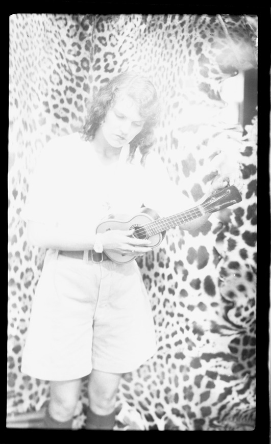Favorite this☆ Aloha Baker playing small guitar Description: View of Aloha Baker playing small guitar, possibly a cavaquinho. Jaguar pelts in background. Handwritten on sleeve: "South America, Brazil, Mato Grosso, 1930-31." Details Resource ID: na002342 Subject: Baker, Aloha W., 1908-1996 Guitar Cavaquinho Baker, Aloha W., 1908-1996--Archives Photography--Negatives Date Issued: 1930 to 1931 Format: 1 negative ; 6 x 3.5 in. Member of: National Automotive History Collection Filing Location: MS33/Aloha Baker collection, Box 7, Folder 12, America: South, Negative sleeves, Brazil, 1930-31 Negative Number: SAM-719 Rights: Physical rights are retained by DPL. Copyright is retained in accordance with U.S. copyright laws.