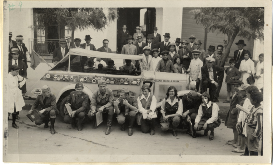 Favorite this☆ Aloha Baker and Wanderwell expedition crew with car no. 2 in Buenos Aires Description: View of Aloha Baker and Wanderwell expedition crew posing with car no. 2 in Buenos Aires, Argentina; onlookers in background. Details Resource ID: na002375 Subject: Baker, Aloha W., 1908-1996 Wanderwell, Walter, 1897-1932--Travel--Argentina--Buenos Aires Ford Model A automobile Baker, Aloha W., 1908-1996--Archives Photographic prints Date Issued: 1930 to 1931 Format: 1 photographic print ; 3.5 x 5.75 in. Member of: National Automotive History Collection Filing Location: MS33/Aloha Baker collection, Box 7, Folder 14, America: South, Photographs, Argentina, 1930-31 Rights: Physical rights are retained by DPL. Copyright is retained in accordance with U.S. copyright laws.