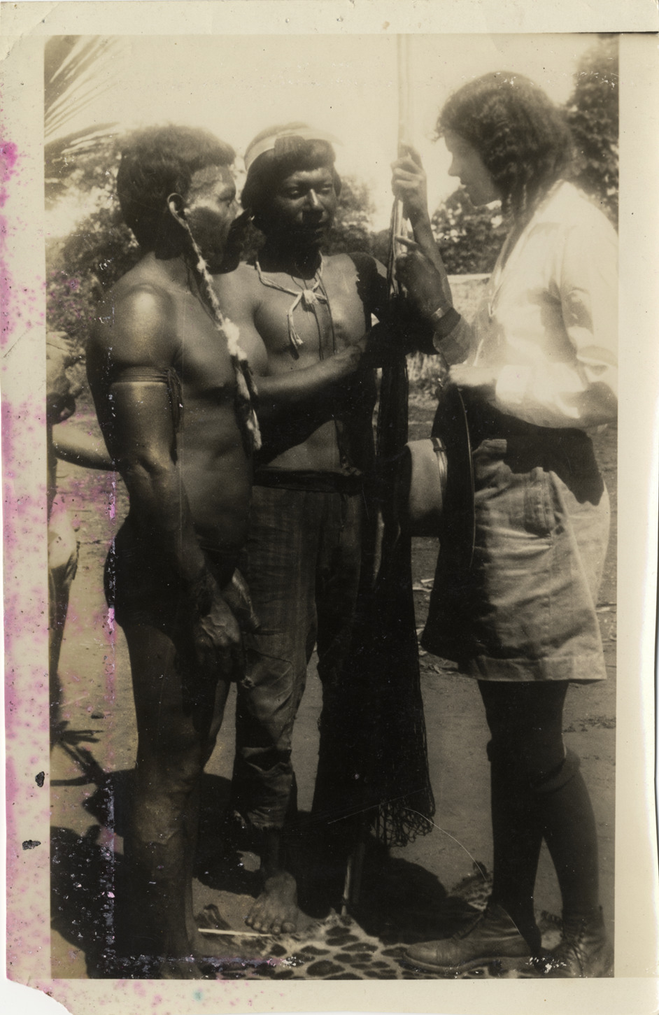Favorite this☆ Aloha Baker and Bororo Indians Description: View of Aloha Baker talking to two Bororo Indian men. Details Resource ID: na002377 Subject: Baker, Aloha W., 1908-1996 Bororo Indians--Brazil--Mato Grosso (State) Wanderwell, Walter, 1897-1932--Travel--Brazil--Mato Grosso (State) Baker, Aloha W., 1908-1996--Archives Photographic prints Date Issued: 1930 to 1931 Format: 1 photographic print ; 9.75 x 6.25 in. Member of: National Automotive History Collection Filing Location: MS33/Aloha Baker collection, Box 7, Folder 15, America: South, Photographs, Brazil (Bororo), 1930-31 Rights: Physical rights are retained by DPL. Copyright is retained in accordance with U.S. copyright laws.
