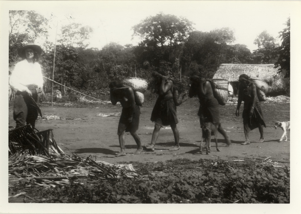 Favorite this☆ Aloha Baker and Bororo Indian women Description: View of four Bororo Indian women carrying baskets; Aloha Baker, holding machete, stands on left. Handwritten on back: "Bringing in the grain, bringing in the grain." Details Resource ID: na002385 Subject: Baker, Aloha W., 1908-1996 Bororo Indians--Brazil--Mato Grosso (State) Indian women--Brazil--Mato Grosso (State) Baker, Aloha W., 1908-1996--Archives Photographic prints Date Issued: 1930 to 1931 Format: 1 photographic print ; 5 x 7 in. Member of: National Automotive History Collection Filing Location: MS33/Aloha Baker collection, Box 7, Folder 15, America: South, Photographs, Brazil (Bororo), 1930-31 Rights: Physical rights are retained by DPL. Copyright is retained in accordance with U.S. copyright laws.