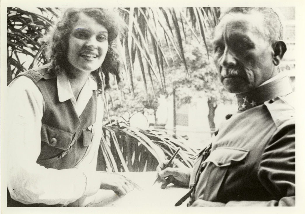 Favorite this☆ Aloha Baker and man signing document Description: View of Aloha Baker and unidentified man in military uniform, signing a document. Details Resource ID: na002400 Subject: Baker, Aloha W., 1908-1996 Baker, Aloha W., 1908-1996--Archives Photographic prints Date Issued: Unknown year Format: 1 photographic print ; 5 x 7 in. Member of: National Automotive History Collection Filing Location: MS33/Aloha Baker collection, Box 7, Folder 16, America: South, Photographs, Brazil (Rio de Janeiro), 1930-31 Rights: Physical rights are retained by DPL. Copyright is retained in accordance with U.S. copyright laws.