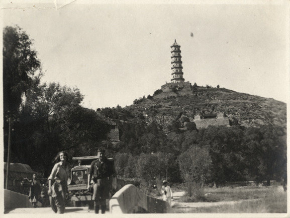 Favorite this☆ Aloha Baker and Walter Wanderwell in China Description: View of Aloha Baker and Walter Wanderwell in China with car no. 2. Pagoda on hill in background. Handwritten on back: "[undecipherable] A.W. #3 car, 7 stories Heaven tower. China, 1924." Details Resource ID: na002493 Subject: Baker, Aloha W., 1908-1996 Wanderwell, Walter, 1897-1932 Automobiles Pagodas--China Baker, Aloha W., 1908-1996--Archives Photographic prints Date Issued: 1924 Format: 1 photographic print ; 3 x 4 in. Member of: National Automotive History Collection Filing Location: MS33/Aloha Baker collection, Box 8, Folder 5, Asia, Photographs, China, 1924 Rights: Physical rights are retained by DPL. Copyright is retained in accordance with U.S. copyright laws.