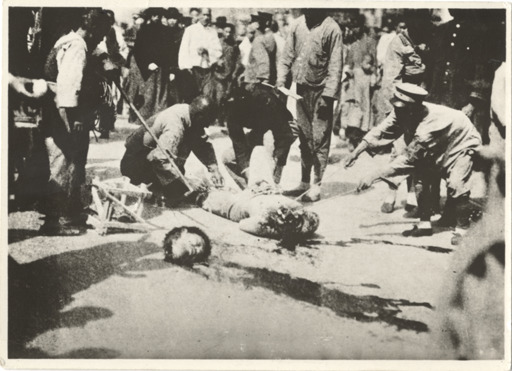 Favorite this☆ Beheading in China Description: View of crowd surrounding beheaded man in China. Handwritten on back: "Canton." Details Resource ID: na002497 Subject: Beheading--China--Guangzhou Baker, Aloha W., 1908-1996--Archives Photographic prints Date Issued: 1924 Format: 1 photographic print ; 2.5 x 3.5 in. Member of: National Automotive History Collection Filing Location: MS33/Aloha Baker collection, Box 8, Folder 5, Asia, Photographs, China, 1924 Rights: Physical rights are retained by DPL. Copyright is retained in accordance with U.S. copyright laws.