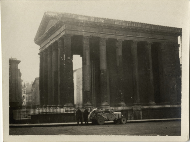 Favorite this☆ Wanderwell car no. 2 in front of Maison Carree in Nimes, France Description: View of Wanderwell crew members and car no. 2 parked in front of Maison Carree in Nimes, France. Handwritten on back: "Romisher Tempel [undecipherable] Frankreich, 23." Details Resource ID: na002618 Subject: Maison Carree (Nimes, France) Wanderwell, Walter, 1897-1932--Travel--France--Nimes Automobiles Baker, Aloha W., 1908-1996--Archives Photographic prints Date Issued: 1923 Format: 1 photographic print ; 3.25 x 4.25 in. Member of: National Automotive History Collection Filing Location: MS33/Aloha Baker collection, Box 9, Folder 15, Europe, Photographs, France, 1922-23/1928 Rights: Physical rights are retained by DPL. Copyright is retained in accordance with U.S. copyright laws.