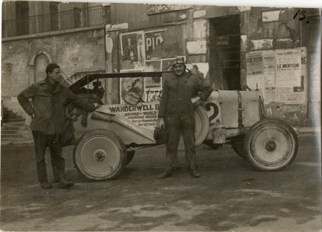 Favorite this☆ Walter Wanderwell in Italy Description: View of Walter Wanderwell and car no. 2 in Italy; unidentified man stands on left. Handwritten on back: "Italy border, 1922." Stamped on back: "H. Martin, Dec. 1922." Details Resource ID: na002635 Creator: Martin, H. Subject: Wanderwell, Walter, 1897-1932 Automobiles Baker, Aloha W., 1908-1996--Archives Photographic prints Date Issued: 1922 Format: 1 photographic print ; 3 x 4.5 in. Member of: National Automotive History Collection Filing Location: MS33/Aloha Baker collection, Box 9, Folder 17, Europe, Photographs, Italy, 1922/1928-29 Rights: Physical rights are retained by DPL. Copyright is retained in accordance with U.S. copyright laws.