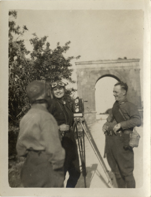 Favorite this☆ Aloha Baker in Spain Description: View of Aloha Baker with members of Wanderwell expedition and movie camera in Spain. Arch in background. Handwritten on back: "Spain '23." Details Resource ID: na002645 Subject: Baker, Aloha W., 1908-1996 Arches--Spain Motion picture cameras Baker, Aloha W., 1908-1996--Archives Photographic prints Date Issued: 1923 Format: 1 photographic print ; 4.25 x 3.25 in. Member of: National Automotive History Collection Filing Location: MS33/Aloha Baker collection, Box 9, Folder 20, Europe, Photographs, Spain, 1923 Rights: Physical rights are retained by DPL. Copyright is retained in accordance with U.S. copyright laws.
