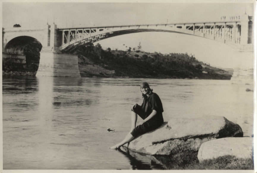 Favorite this☆ Aloha Baker at edge of river in Spain Description: View of Aloha Baker seated on rock at the edge of river in Spain; bridge in background. Handwritten on back: "Spain, 1923." Details Resource ID: na002649 Subject: Baker, Aloha W., 1908-1996 Bridges--Spain Rivers--Spain Baker, Aloha W., 1908-1996--Archives Photographic prints Date Issued: 1923 Format: 1 photographic print ; 4 x 6 in. Member of: National Automotive History Collection Filing Location: MS33/Aloha Baker collection, Box 9, Folder 20, Europe, Photographs, Spain, 1923 Rights: Physical rights are retained by DPL. Copyright is retained in accordance with U.S. copyright laws.