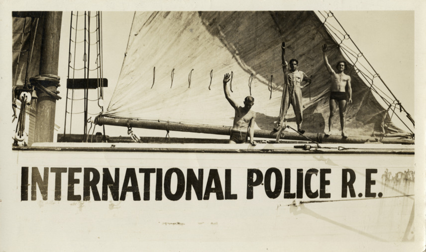 Favorite this☆ Three men on sailboat Description: View of three men waving on deck of sailboat. Painted on side of boat: "International police, R.E." Handwritten on back: "International police, 1932." Details Resource ID: na002724 Subject: Men Sailboats International police Baker, Aloha W., 1908-1996--Archives Photographic prints Date Issued: 1932 Format: 1 photographic print ; 3.5 x 5.75 in. Member of: National Automotive History Collection Filing Location: MS33/Aloha Baker collection, Box 10, Folder 13, W.A.W.E.C./I.P., Promotional Materials Rights: Physical rights are retained by DPL. Copyright is retained in accordance with U.S. copyright laws.
