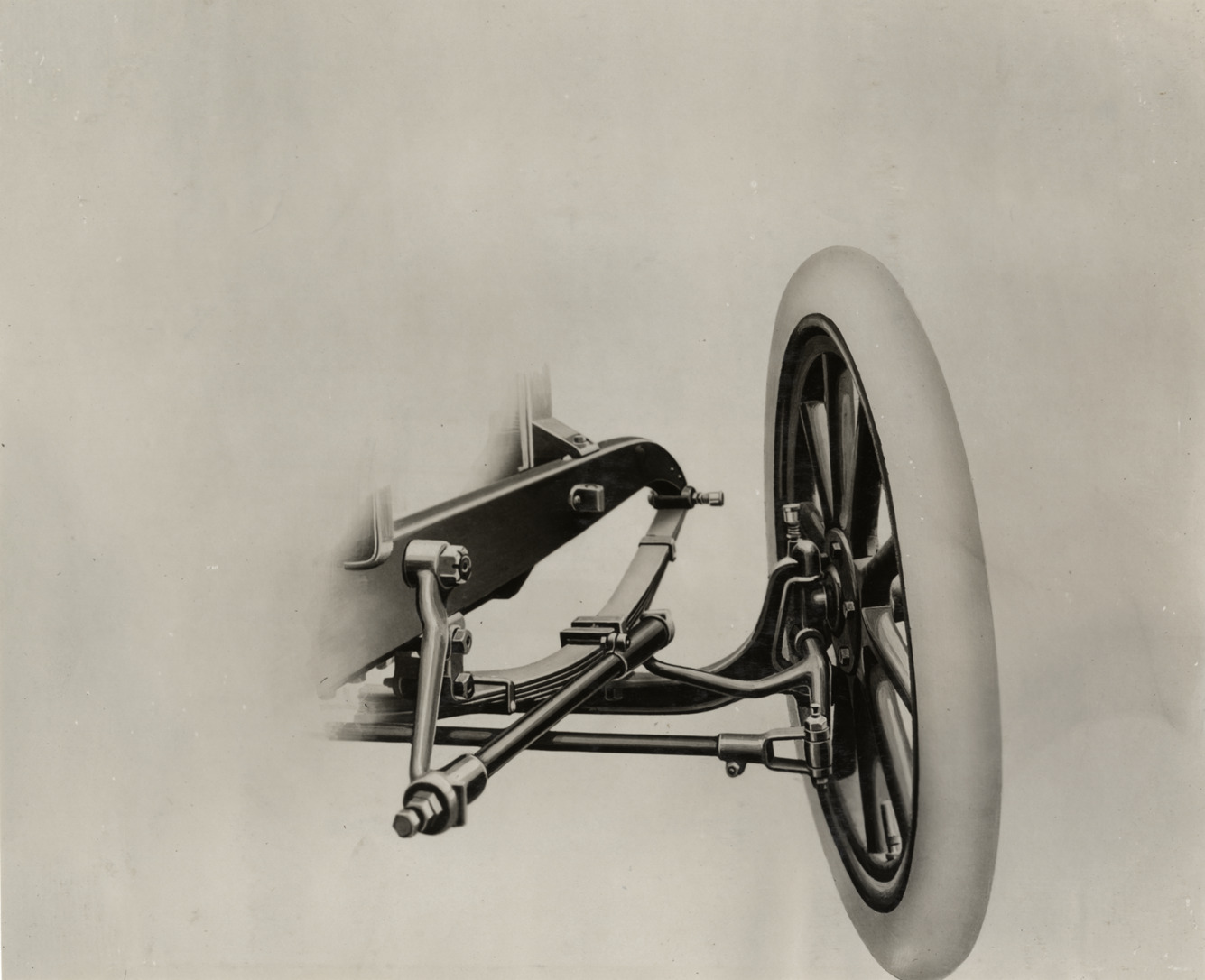 View of tire and section of chassis of 1910 Abbott-Detroit car. Handwritten on back: "Abbott-Detroit, 1910."