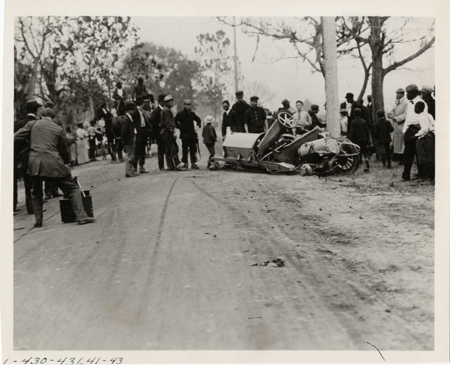 Favorite this☆ Automobile accident Description: View of aftermath of accident between car and utility pole; crowd stands nearby. Handwritten on back: "Accidents." Details Resource ID: na003008 Subject: Traffic accidents Automobiles--Collision damage Photographic prints Date Issued: Unknown year Format: 1 photographic print ; 8 x 10 in. Member of: National Automotive History Collection Lazarnick Collection Filing Location: Accidents Rights: Physical rights are retained by DPL. Copyright is retained in accordance with U.S. copyright laws.