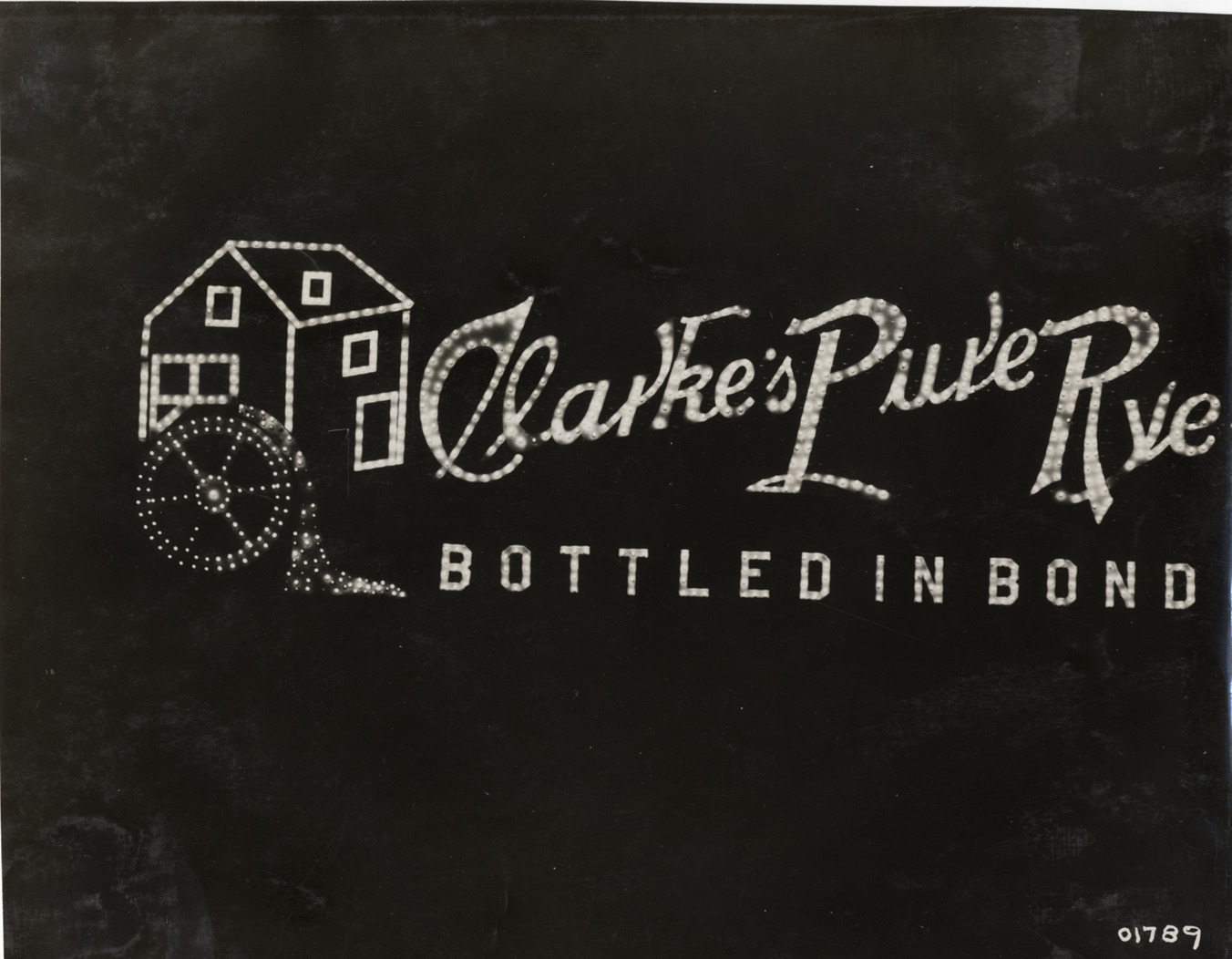 View of sign advertising Clarke's pure rye with picture of mill. Stamped on back: "Spooner & Wells, Inc., photographers, 1231 Woodward Ave., Detroit, Mich., telephone North 1745." Handwritten on back: "Advertising, 1911. Taken for Greenwood Advertising Company, Nashville, TN."