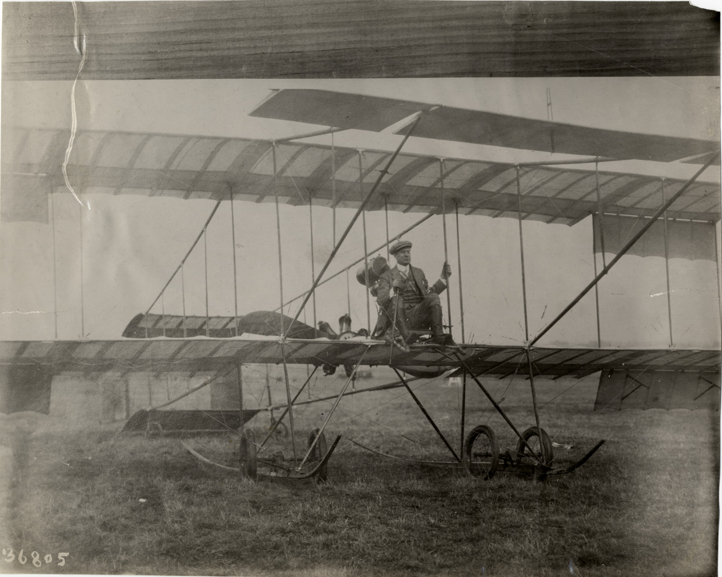 Favorite this☆ Man seated in airplane Description: View of man seated in airplane in field. Stamped on back: "Spooner & Wells, Inc., photographers, telephones 3472-3473 Columbus, 1931 Broadway, New York." Handwritten on back: "Aircraft, 1910." Details Resource ID: na003057 Creator: Spooner & Wells Subject: Airplanes Air pilots Photographers--New York (State)--New York Photographic prints Date Issued: 1910 Format: 1 photographic print ; 7.75 x 9.5 in. Member of: National Automotive History Collection Lazarnick Collection Filing Location: Aircraft Rights: Physical rights are retained by DPL. Copyright is retained in accordance with U.S. copyright laws.