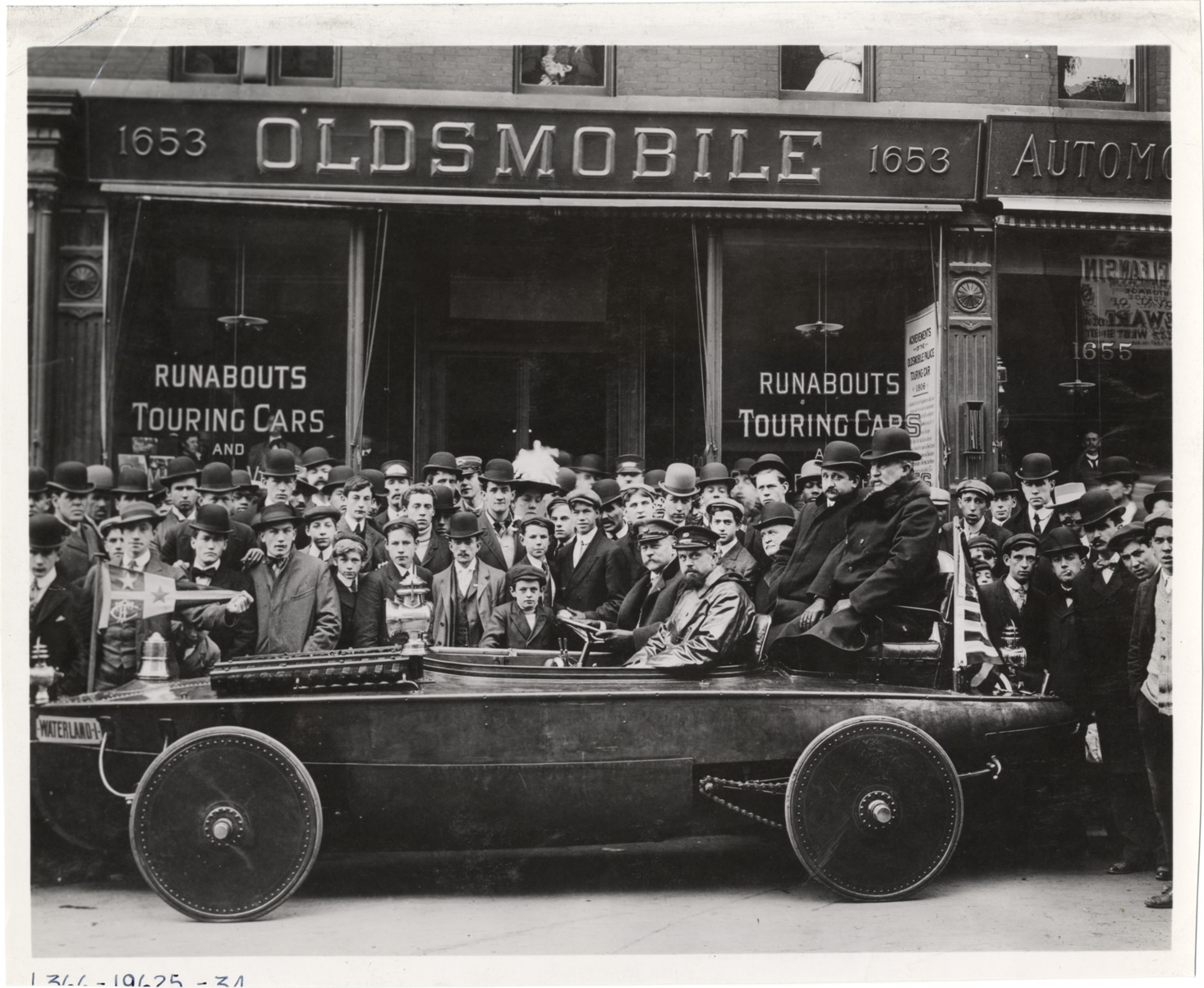 Favorite this☆ All terrain vehicle Description: View of passengers sitting in all terrain vehicle parked in front of Oldsmobile dealership. Crowd gathers behind car. Handwritten on back: "Water-land amphibian." Details Resource ID: na003233 Subject: All terrain vehicles Automobile dealers Photographic prints Date Issued: Unknown year Format: 1 photographic print ; 8 x 9.75 in. Member of: National Automotive History Collection Lazarnick Collection Filing Location: All terrain vehicles Rights: Physical rights are retained by DPL. Copyright is retained in accordance with U.S. copyright laws.