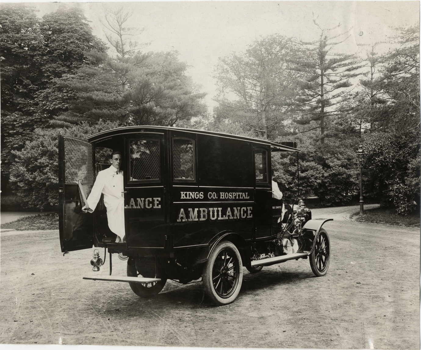Favorite this☆ 1908 White ambulance Description: Side and rear view of 1908 White ambulance; man wearing white coat sits in rear of ambulance. Painted on side of vehicle: "Kings Co. Hospital ambulance." Handwritten on back: "Ambulances--White, 1908." Details Resource ID: na003240 Subject: Ambulances Kings County Hospital (Kings County, N.Y.)--Employees White Company (Cleveland, Ohio) Photographic prints Date Issued: Unknown year Format: 1 photographic print ; 7.75 x 9.25 in. Member of: National Automotive History Collection Lazarnick Collection Filing Location: Ambulances--White, 1908 Rights: Physical rights are retained by DPL. Copyright is retained in accordance with U.S. copyright laws.