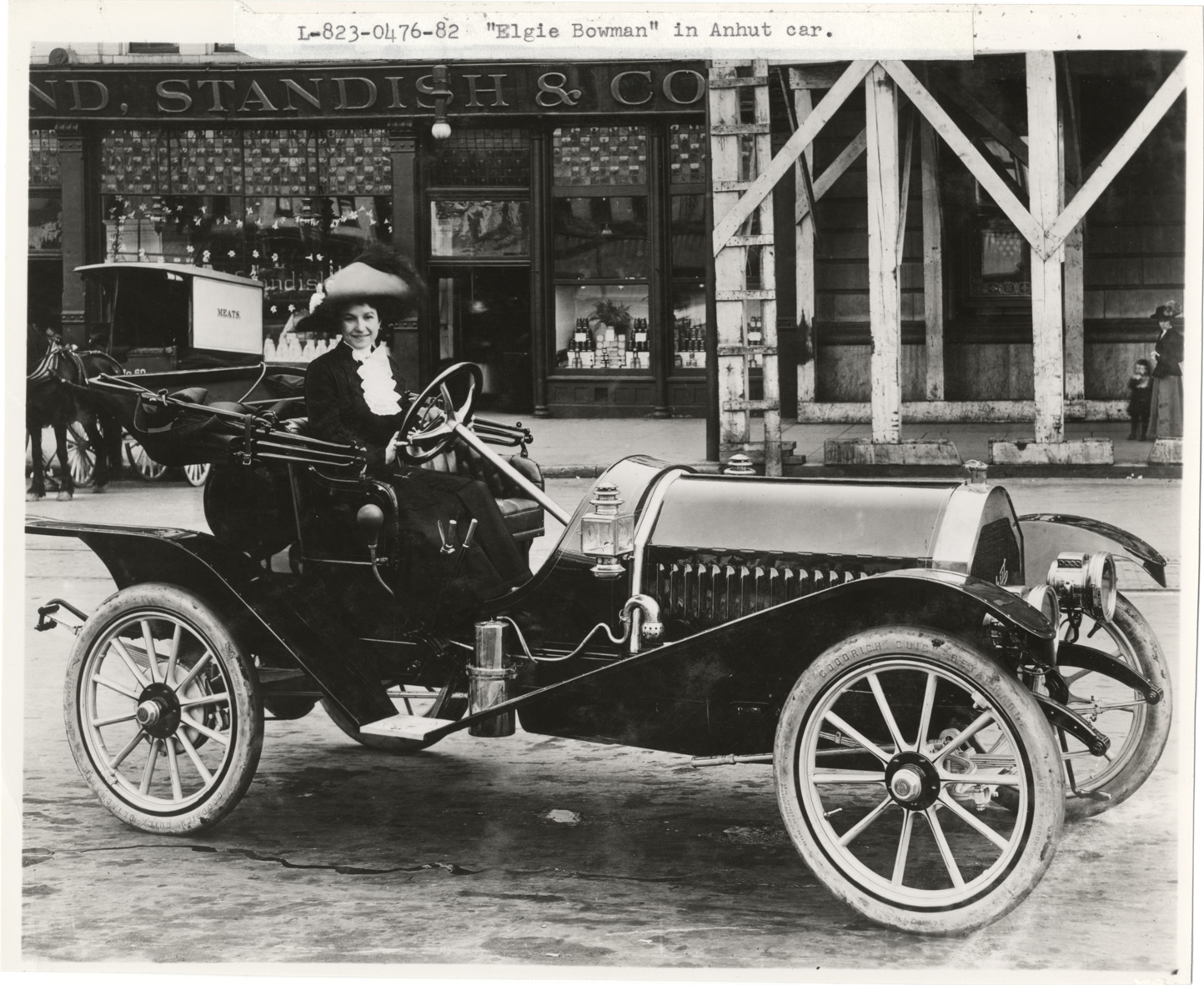 Favorite this☆ Elgie Bowman driving Anhut automobile Description: View of Elgie Bowman driving Anhut car on city street. Typed on front: "Elgie Bowman in Anhut car." Handwritten on back: "Anhut." Details Resource ID: na003269 Subject: Automobiles Anhut Motor Car Company Women automobile drivers Photographic prints Date Issued: Unknown year Format: 1 photographic print ; 8 x 9.75 in. Member of: National Automotive History Collection Lazarnick Collection Filing Location: Anhut Rights: Physical rights are retained by DPL. Copyright is retained in accordance with U.S. copyright laws.