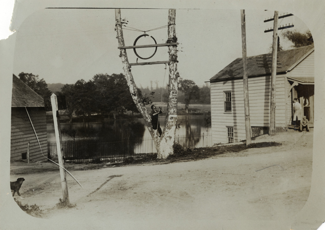 Favorite this☆ Man adjusting rope in tree Description: View of man standing in fork of tree, adjusting a rope attached to brace. Wooden-frame building on right; fence and lake in background. Handwritten on back: "Architecture--Commercial." Details Resource ID: na003300 Subject: Trees Wooden-frame buildings Photographic prints Date Issued: Unknown year Format: 1 photographic print ; 5 x 7 in. Member of: National Automotive History Collection Lazarnick Collection Filing Location: Architecture--Commercial #1 Rights: Physical rights are retained by DPL. Copyright is retained in accordance with U.S. copyright laws.