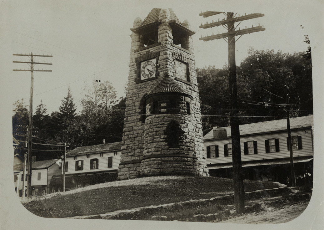 Favorite this☆ Clock tower Description: View of Richardsonian Romanesque clock tower with tile roof; wooden-frame building in background. Handwritten on back: "Architecture--Commercial." Details Resource ID: na003302 Subject: Towers Romanesque revival (Architecture) Wooden-frame buildings Photographic prints Date Issued: Unknown year Format: 1 photographic print ; 5 x 7 in. Member of: National Automotive History Collection Lazarnick Collection Filing Location: Architecture--Commercial #1 Rights: Physical rights are retained by DPL. Copyright is retained in accordance with U.S. copyright laws.