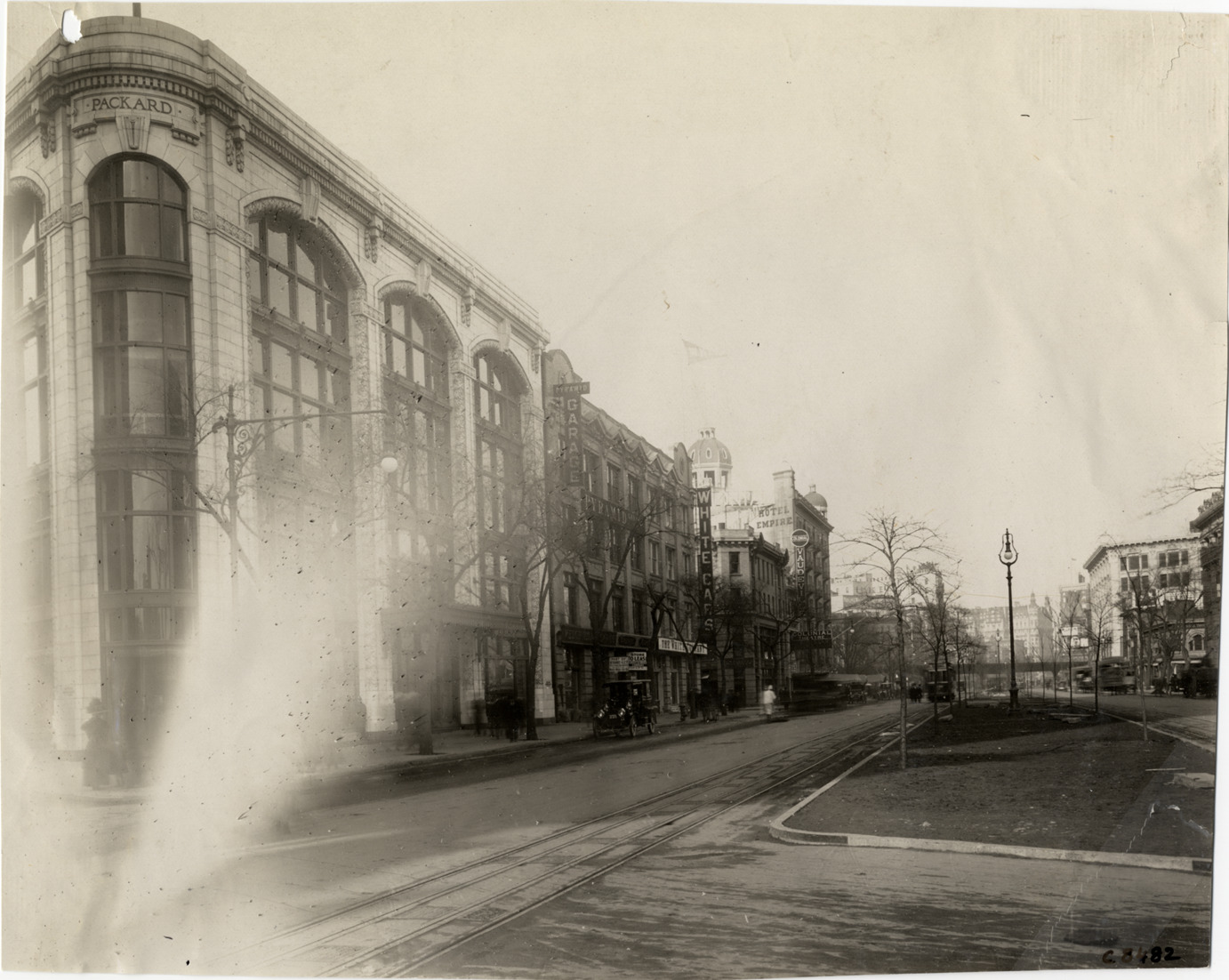 Favorite this☆ Commercial buildings on boulevard Description: View of several commercial buildings on boulevard. Packard building in foreground; signs for White cars, Pyramid garage and Hotel Empire are visible. Handwritten on back: "Architecture--Commercial, 1908." Details Resource ID: na003320 Subject: Commercial buildings Streets Photographic prints Date Issued: 1908 Format: 1 photographic print ; 7.5 x 9.25 in. Member of: National Automotive History Collection Lazarnick Collection Filing Location: Architecture--Commercial #2 Negative Number: Negative #C8482 Rights: Physical rights are retained by DPL. Copyright is retained in accordance with U.S. copyright laws.