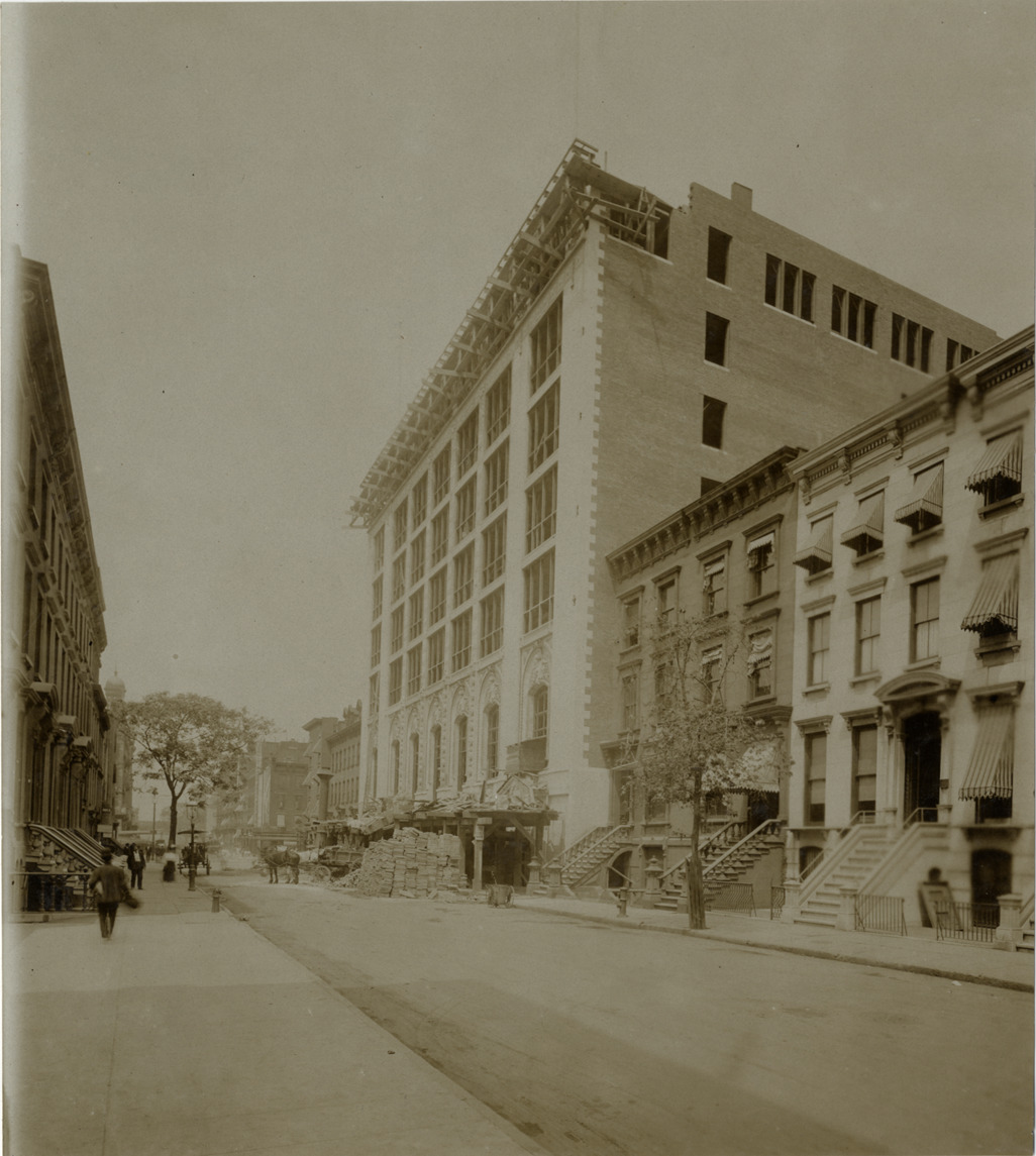 Favorite this☆ Building under construction Description: View of multistory building under construction; horse-drawn wagon and construction materials on street. Residential buildings on right. Handwritten on back: "Architecture--Domestic, 1906." Details Resource ID: na003426 Subject: Buildings--Design and construction Row houses Photographic prints Date Issued: 1906 Format: 1 photographic print ; 7.75 x 7 in. Member of: National Automotive History Collection Lazarnick Collection Filing Location: Architecture--Domestic #4 Rights: Physical rights are retained by DPL. Copyright is retained in accordance with U.S. copyright laws.