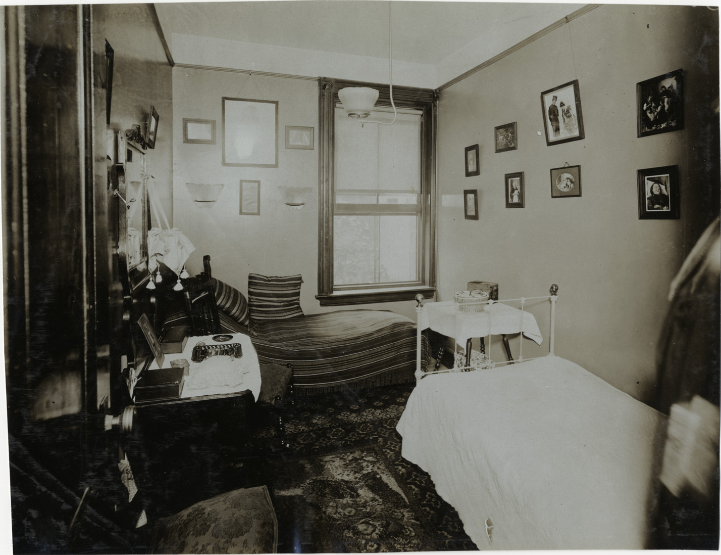 Favorite this☆ Bedroom Description: View of bedroom furnished with bed, chest of drawers with mirror, couch or daybed and chairs; artwork displayed on walls. Handwritten on back: "Architecture--Domestic, 1906." Details Resource ID: na003550 Subject: Bedrooms Beds Sofas Photographic prints Date Issued: 1906 Format: 1 photographic print ; 7.5 x 9.5 in. Member of: National Automotive History Collection Lazarnick Collection Filing Location: Architecture--Domestic #9 Rights: Physical rights are retained by DPL. Copyright is retained in accordance with U.S. copyright laws.