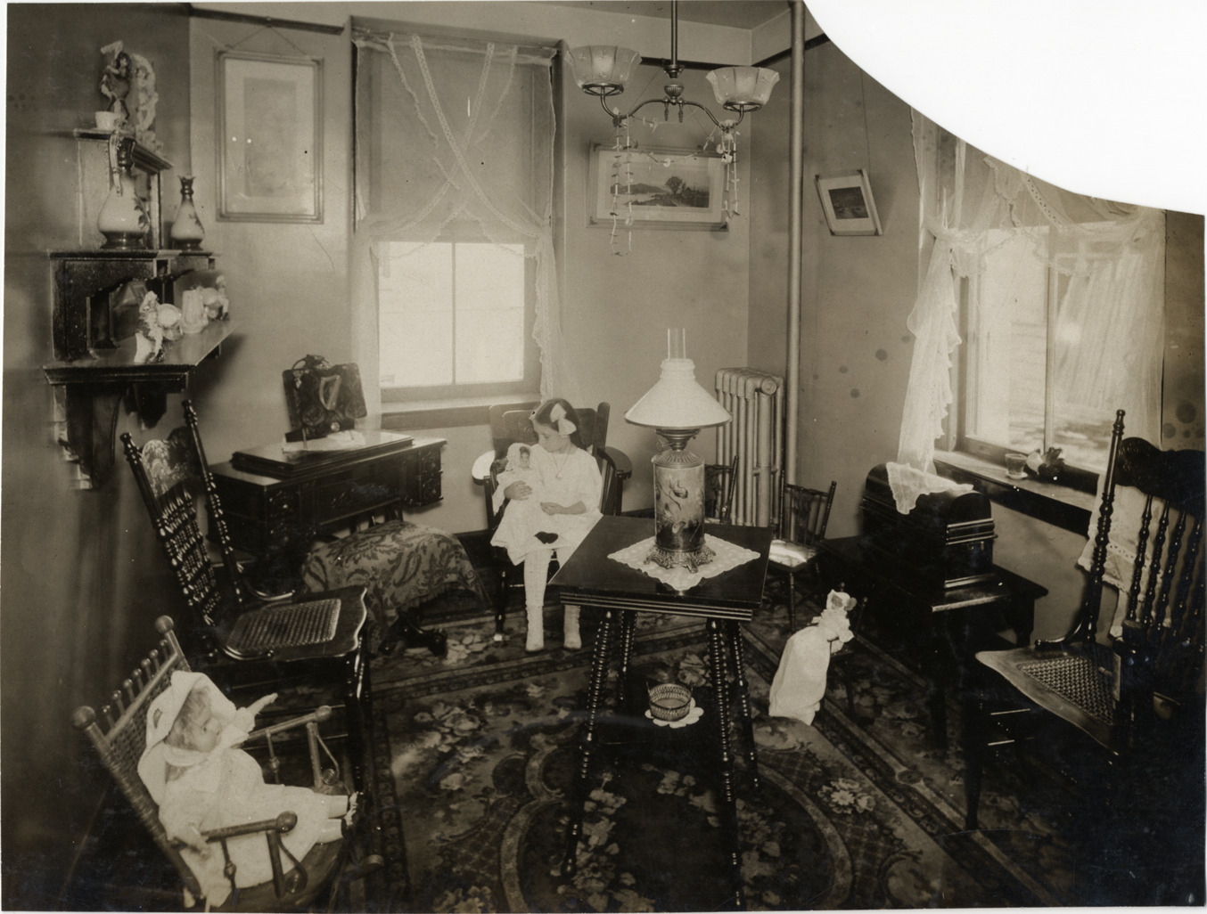 Favorite this☆ Girl playing with dolls in living room Description: View of girl playing with dolls in living room. Room is furnished with tables, chairs, shelves and lamp. Handwritten on back: "Architecture--Domestic, 1906." Details Resource ID: na003583 Subject: Living rooms Girls Dolls Photographic prints Date Issued: 1906 Format: 1 photographic print ; 7 x 9 in. Member of: National Automotive History Collection Lazarnick Collection Filing Location: Architecture--Domestic #10 Rights: Physical rights are retained by DPL. Copyright is retained in accordance with U.S. copyright laws.