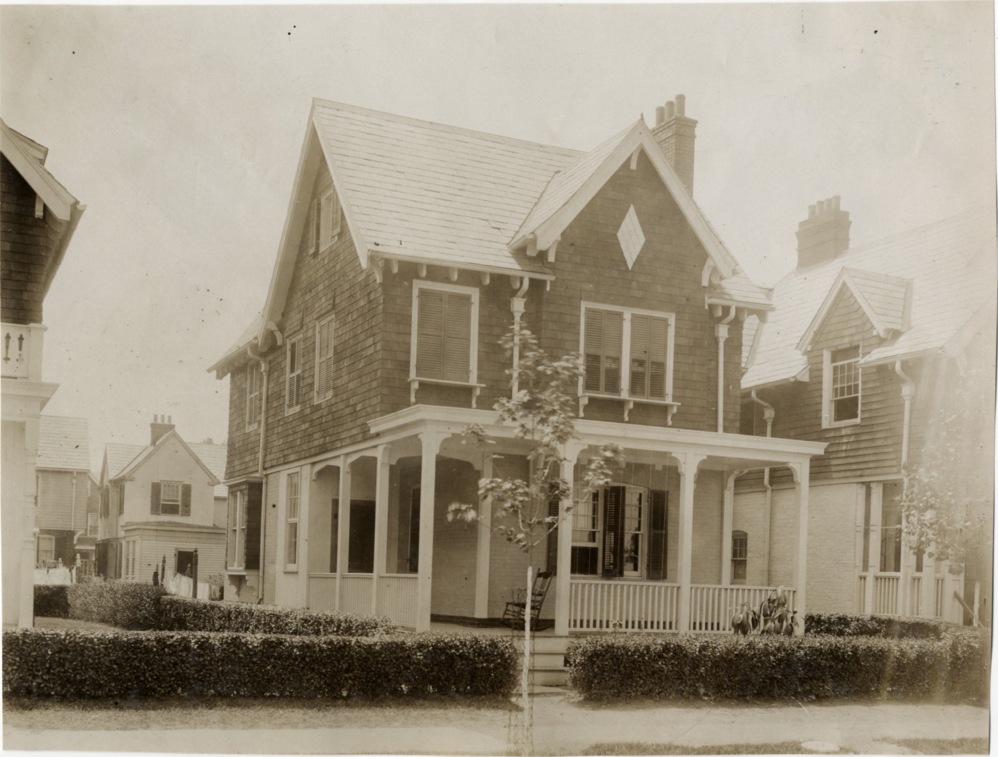 Favorite this☆ House Description: Front and side view of two-story brick house with covered entry porch; shingle wall cladding on second story. Handwritten on back: "Architecture--Domestic, 1906." Details Resource ID: na003630 Subject: Brick houses Architecture, Domestic Photographic prints Date Issued: 1906 Format: 1 photographic print ; 7.25 x 9.5 in. Member of: National Automotive History Collection Lazarnick Collection Filing Location: Architecture--Domestic #12 Rights: Physical rights are retained by DPL. Copyright is retained in accordance with U.S. copyright laws.